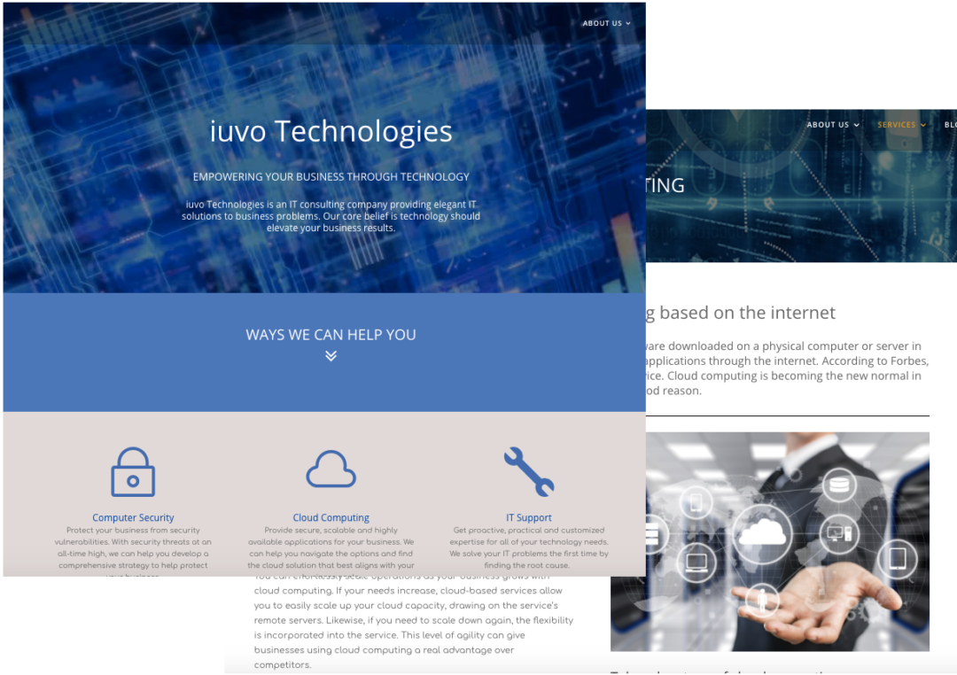 iuvo Technologies asked Deb to create an attractive and better organized website that would reflect their business as a leading IT company in the Boston area.