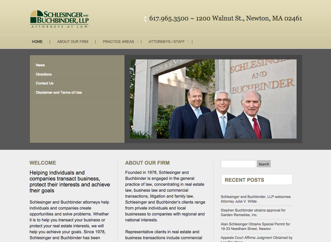 Schlesinger & Buchbinder Law of Newton hired Deb a number of years ago and their website still stands. The tidy layout of this theme was perfect for their purposes.